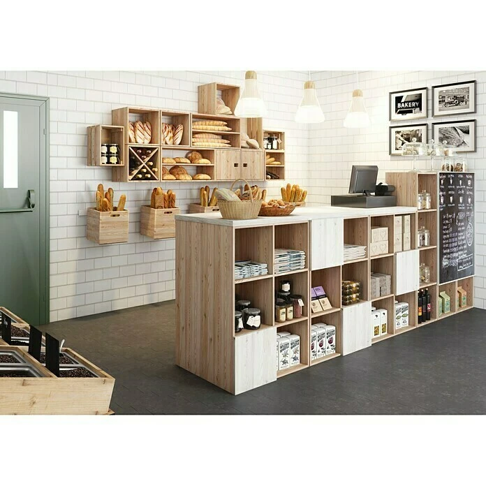 Das Holzregal von Astigarrara bietet großzügigen Stauraum auf geringer Grundfläche. Das Regal ist aus natürlichem Kiefernholz gefertigt und mit dem PEFC-Siegel versehen. Die Oberfläche ist unbehandelt, wodurch das Regal seine natürliche Farbe beibehält. Die drei geräumigen Fächer sind quadratisch und erlauben die dekorative Aufbewahrung von Büchern, Pflanzen oder Dekoartikeln. Jeder der Regalböden erbringt eine Tragkraft von 50 kg. Da das Regal offen ist, kann es von beiden Seiten bestückt und auch als Raumtrenner verwendet werden.