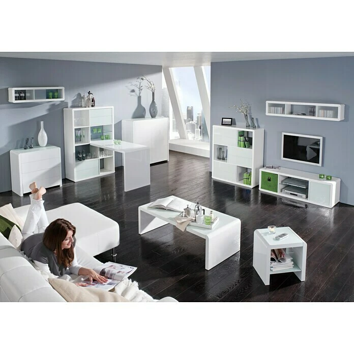 Der Schubladencontainer Atlanta von Phönix lässt sich ideal in alle Atlanta Regale, Sideboards oder Lowboards einsetzen und ermöglicht ganz individuelle Gestaltungsmöglichkeiten. Mit seinen zwei Schubladen bietet er genügend Stauraum für kleinere Haushaltsgegenstände oder Unterlagen. Die Schubladen besitzen eine hochglänzende Glasfront und lassen sich über eine Push-Open-Funktion leicht öffnen und wieder schließen.
