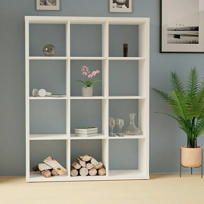 Das Regal bietet mit seinen zwölf Fächern nützlichen Stauraum für Kleidung, Bücher oder andere Utensilien auf geringer Grundfläche. Das Regal kann sowohl für den allgemeinen Wohnbereich als auch für Büro-, Schlaf- und Kinderzimmer verwendet werden. Es überzeugt neben seinem modern schlichten Design auch durch seine hohe Stabilität und die einfache Montage. Das Regal kann durch seine offene Gestaltung ebenfalls rein dekorativ oder als Raumtrenner genutzt werden.