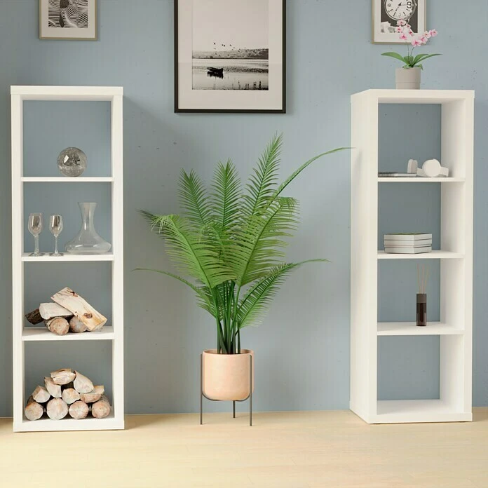 Das Regal bietet mit seinen vier Fächern nützlichen Stauraum für Kleidung, Bücher oder andere Utensilien auf geringer Grundfläche. Durch die praktische Ausführung entstehen viele unterschiedliche Kombinationsmöglichkeiten für individuelles Einrichten. Das Regal kann sowohl für den allgemeinen Wohnbereich als auch für Büro-, Schlaf- und Kinderzimmer verwendet werden. Es überzeugt neben seinem modern schlichten Design auch durch seine hohe Stabilität und die einfache Montage. Das Regal kann durch seine offene Gestaltung ebenfalls rein dekorativ genutzt werden.