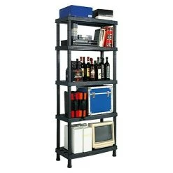 Das zuverlässige Regalux Kunststoffregal bietet dank seiner 5 gelochten Böden genügend Platz zur Aufbewahrung vieler Gegenstände. Durch die einfache Steckmontage lässt sich das Regal ohne Werkzeugeinsatz problemlos zusammenbauen. Mit einer Traglast von 40 kg pro Boden zeichnet sich das Regal zudem durch seine hohe Stabilität aus. Das Kunststoffregal kann auch in Feuchträumen aufgestellt werden. Im Lieferumfang sind Verbindungsstücke und Wandhalter enthalten.