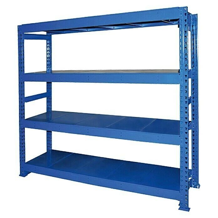 Das Grundregal Jumbo von Regalux ist mit einer Traglast von 600 kg pro Boden das ideale Regal fĂŒr Keller, Garage und Werkstatt. Ausgestattet mit insgesamt 4 Böden bietet es als Schwerlastregal viel Stauraum fĂŒr extrem schwere und sperrige GegenstĂ€nde. Die hochwertige Verarbeitung, Standsicherheit und StabilitĂ€t sorgen fĂŒr eine lange Lebensdauer und die nötige Sicherheit. Gleichzeitig ist es dank des praktischen Stecksystems schnell und einfach, ganz ohne Werkzeug, montiert. Somit bietet das Grundregal Jumbo von Regalux professionellen Stauraum auf hohem Niveau und lĂ€sst sich bei Bedarf problemlos durch das Anbauteil Jumbo erweitern.
