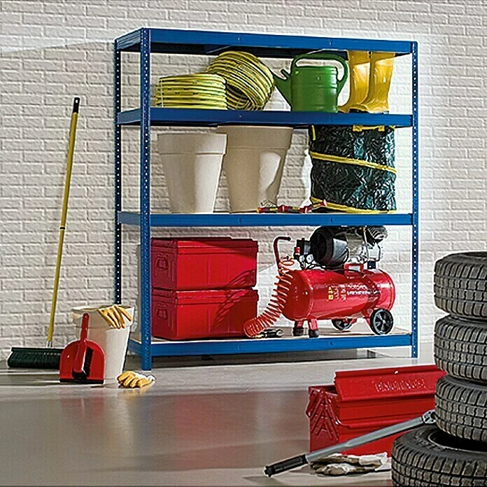 BAUHAUS Regalux Metall-Schwerlastregal XXL L X B X H: 60 X 160 X 185 Cm, Traglast: 350 Kg/Boden, Anzahl Böden: 4 Stk., Stecken, Blau