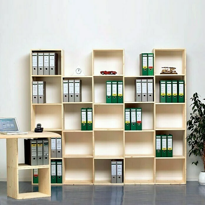 Die Regalwürfel von Regalux ermöglichen die individuelle Zusammenstellung eines Würfelregals. Die Würfel lassen sich jedem Raumgefüge optimal anpassen und sind, dank der vorgebohrten Löcher und dem mitgelieferten Schraubenset, einfach und schnell montiert. Für die nötige Stabilität und Standsicherheit des Würfelregals sorgt ein Keilprofil an ober und unterkante der Seitenteile. Die unbehandelte Oberfläche kann problemlos mit Lacken und Lasuren Ihren individuellen Wünschen angepasst werden. Mit den Regalwürfeln von Regalux steht ein umfangreiches Würfelregal-System zur Verfügung, welches sich jederzeit beliebig erweitern lässt und somit größtmögliche Flexibilität bei der Gestaltung von Wohnräumen bietet.