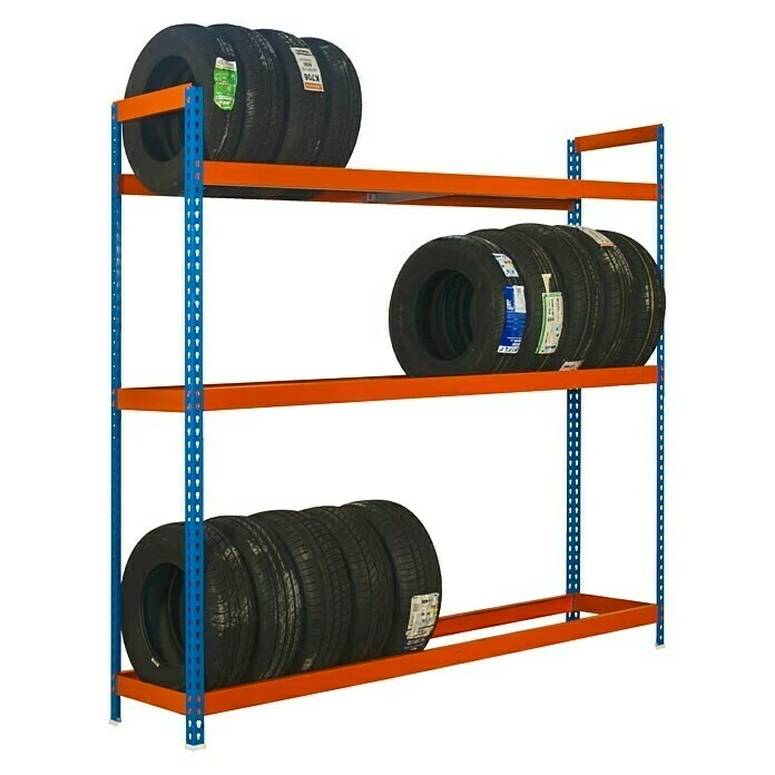 BAUHAUS Simonrack Simonauto Metall-Reifenregal Autoforte L X B X H: 45 X 120 X 200 Cm, Traglast: 120 Kg/Boden, Anzahl Böden: 3 Stk., Blau/Orange