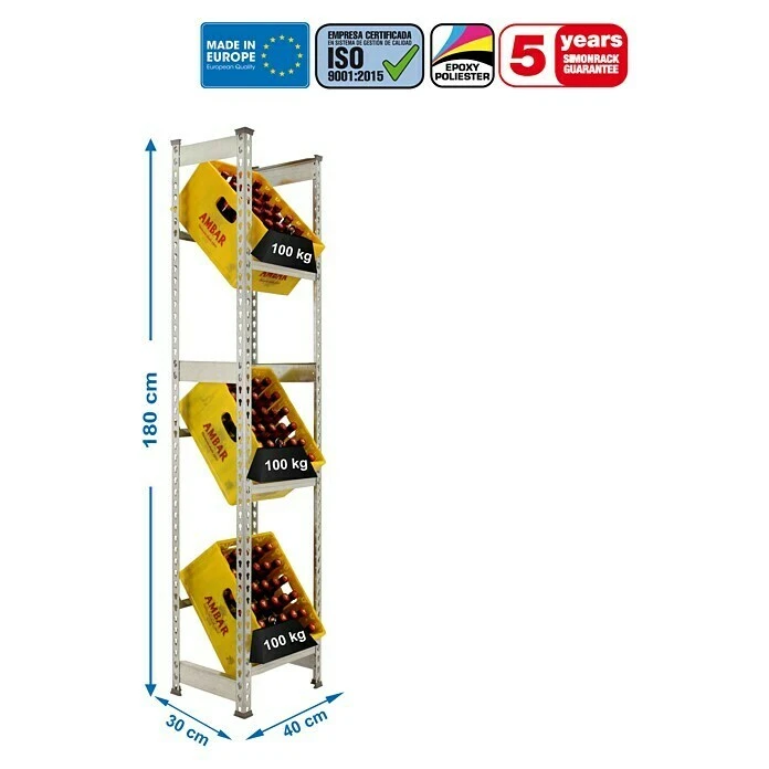 BAUHAUS Simonrack Simonbottle Metall-Getränkekistenregal Bottleclick L X B X H: 30 X 40 X 180 Cm, Traglast: 100 Kg/Boden, Anzahl Böden: 3, Silber