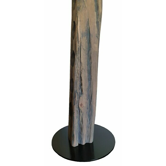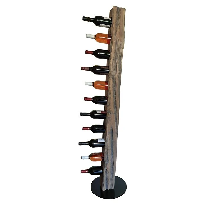 Dieser aus Massivholz in deutscher Handarbeit künstlich auf alt gestylte Weinständer, welcher sich nahtlos in jede Einrichtung einfügt, ist, aufgrund seiner ihm verliehenen Struktur, ein Unikat. Er eignet sich ideal als Geschenk für jeden Weinliebhaber oder für die perfekte Präsentation Ihres guten Weines. Die unterschiedlichen Narben, Risse und Einkerbungen verleihen dem Weinregal seine individuelle Note mit eigenem Charme und Charakter. Dieser Weinhalter weist eine Höhe von 158 cm und einen Durchmesser von 34 cm auf. Er bietet Platz für bis zu 11 Weinflaschen bei stabilem Stand auf einer runden, schwarz lackierten Stahlplatte; die Flaschenhalterungen sind für Flaschen bis zu 80 mm Durchmesser (handelsübliche 0,75 l Flaschen) vorgesehen und bieten zudem mit ca. 8 cm Bohrtiefe einen stabilen Halt.
